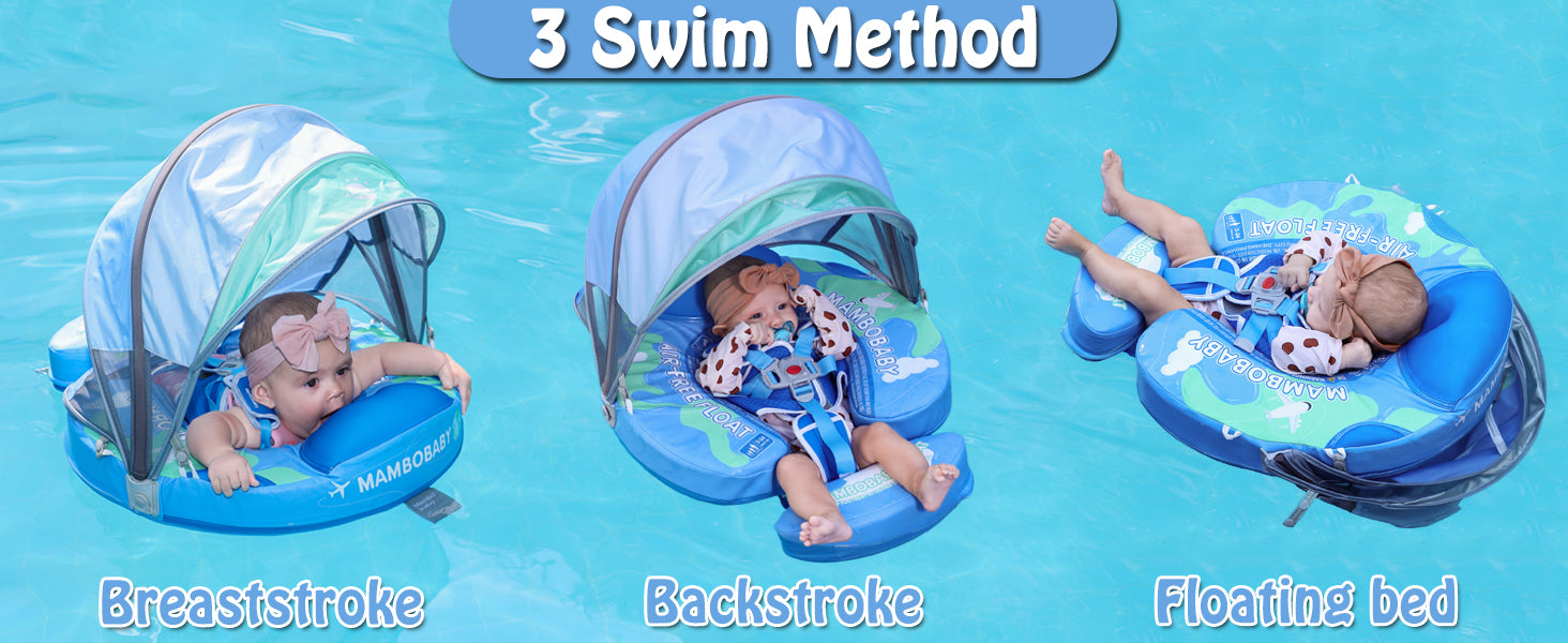 The safety buckle of Mambobaby swimming float with soft material. It is not only kept safe for your baby but lets baby backstroke or breaststroke with different buckle methods.