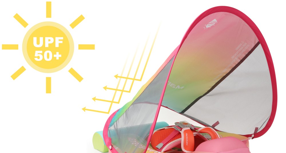 HECCEI Mambobaby Baby Swim Float includes a removable UPF 50+ canopy that shields your baby’s skin from the sun, making summer swimming safer and more enjoyable.