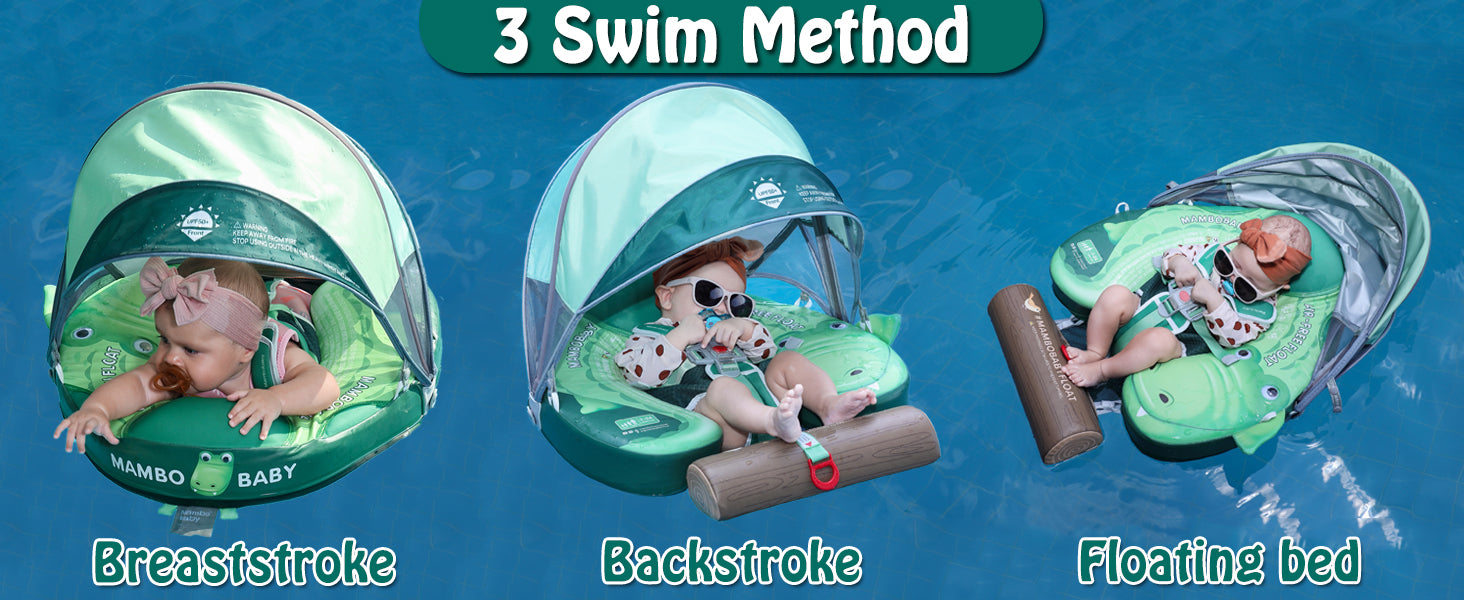Add removable tail, Prevent baby from flipping backward. Upgraded safety buckle, The Upgraded safety buckle provides 5 support points and perfect 40¡ãangle to keep a balance to avoid baby flip over and fall off. Upgraded into 2 swim ways which are backstroke and breaststroke with different buckle method. Backstroke Suitable for 3~6months baby, breaststroke Suitable for 3~24months baby.