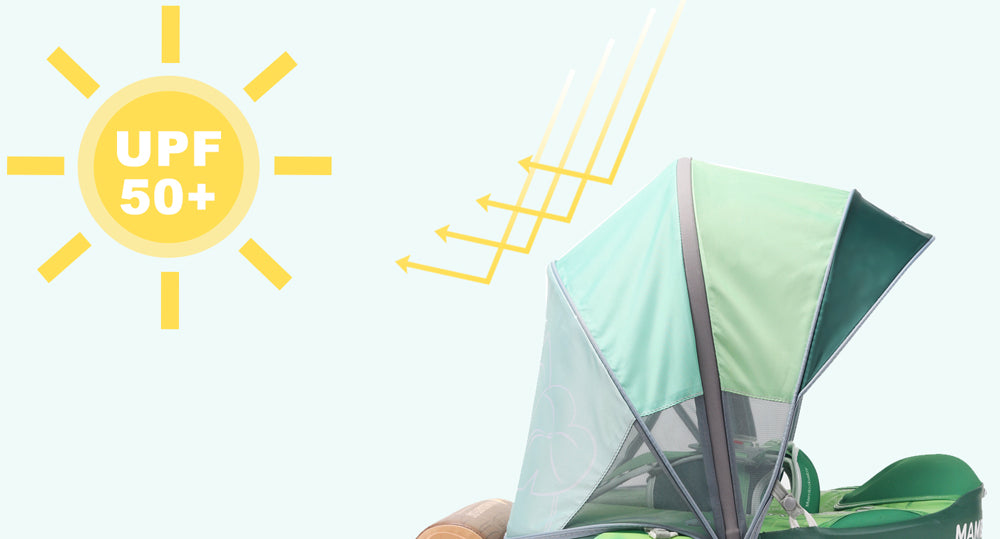 HECCEI Baby Swim Float comes with a removable canopy. The removable assemble UV-PROOF canopy sun canopy covered with UPF 50+ sunscreen coating protects baby¡¯s skin away from the sun. Make baby enjoy the swimming fun in summer.