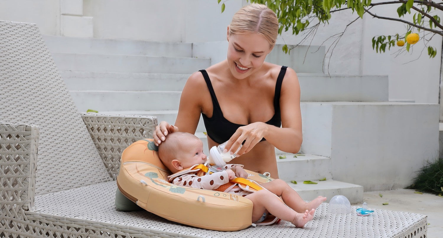When the baby is lying on the swim float, being able to maintain the post of breaststroke all the time, cultivate your baby's correct swimming posture.