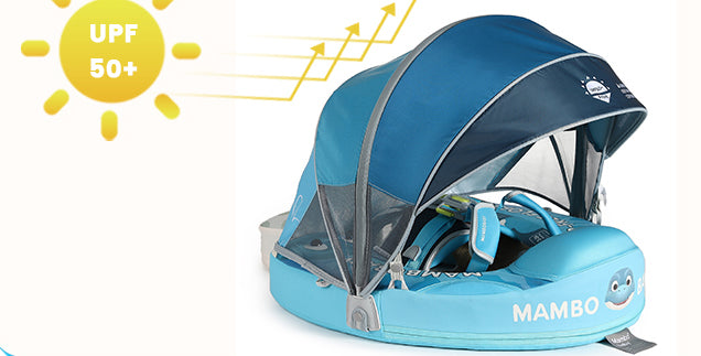 【3RD UPGRADED VERSION】The  Mambobaby  Baby Swim Float comes with a removable canopy. The removable assemble UV-PROOF canopy sun canopy covered with UPF 50+ sunscreen coating protects the baby’s skin away from the sun. Make baby enjoy the swimming fun in summer.