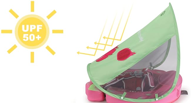 HECCEI Mambobaby Baby Swim Float includes a removable UPF 50+ canopy that shields your baby’s skin from the sun, making summer swimming safer and more enjoyable.