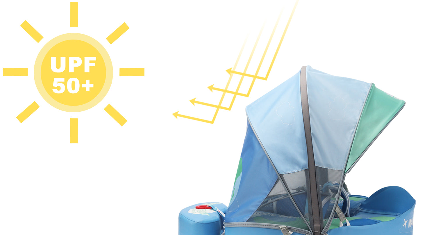 HECCEI Mambobaby Baby Swim Float includes a removable UPF 50+ canopy that shields your baby’s skin from the sun, making summer swimming safer and more enjoyable.