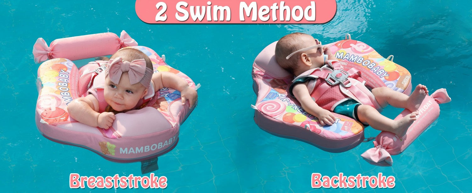 Add removable tail, Prevent baby from flipping backward. Upgraded safety buckle, The Upgraded safety buckle provides 5 support points and perfect 40¡ãangle to keep a balance to avoid baby flip over and fall off. Upgraded into 2 swim ways which are backstroke and breaststroke with different buckle method. Backstroke Suitable for 3~6months baby, breaststroke Suitable for 3~24months baby.