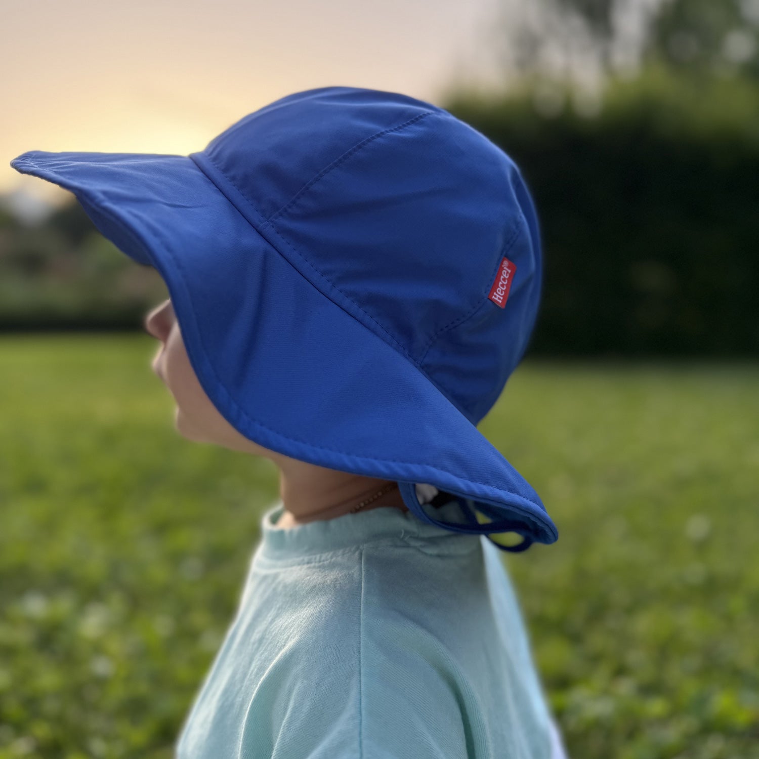 Available in 45cm (0-6 months) and 50cm (6-24 months) sizes, with a structured brim for consistent coverage.