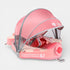 • Safety features: button-lock system, larger harness vest, padded crotch & chest straps, leg support