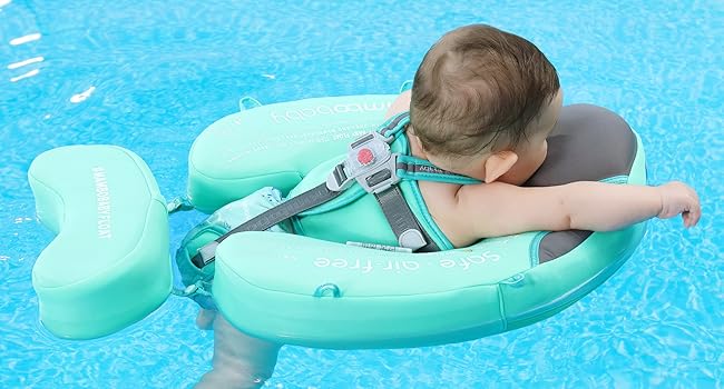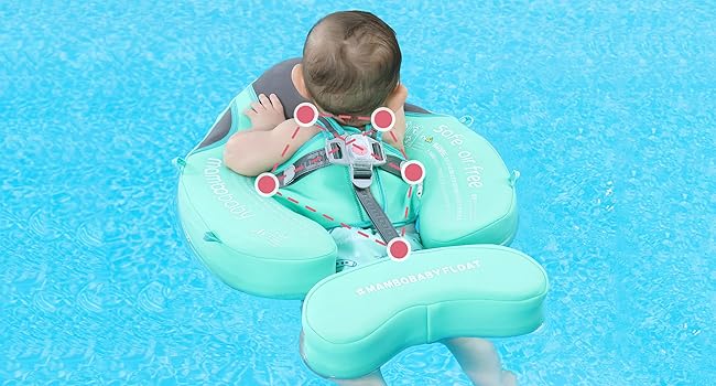 • SAFETY - NEW button lock catch and larger harness vest so the baby doesn't slip when they are paddling. Two button hole and velcro to adjust. Double safety clasp, dual protection safety. It consists of a multiple harness system which is easy to use. Thick padded adjustable crotch and chest strap. Extra security with legs support to avoid baby slipping out or flipping forward.Can use repeatedly and for long time. Built to for strong durability.