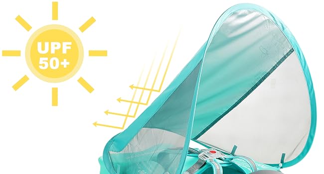 HECCEI Mambobaby Baby Swim Float includes a removable UPF 50+ canopy that shields your baby’s skin from the sun, making summer swimming safer and more enjoyable.